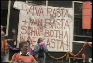 Met dit spandoek ontstond in 1988 – twee jaar voor de vrijlating van Mandela – een symbiose tussen voetbalgekte en de solidariteit met de anti-apartheidsstrijd. Een jaar later zou Ruud Gullit in een televisiespotje voor het ondergrondse station van het ANC, Radio Freedom, de kop van Botha’s lijf schieten. Waarna het hoofd van Freek de Jonge tevoorschijn komt; ‘De kop is eraf. Steun Radio Freedom.’